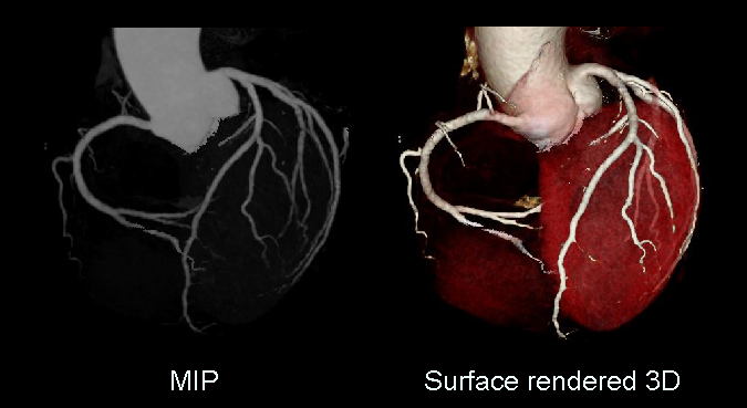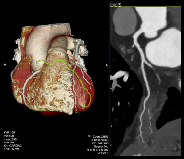 - Curved planner reformations (CPRs) of coronary arteries.