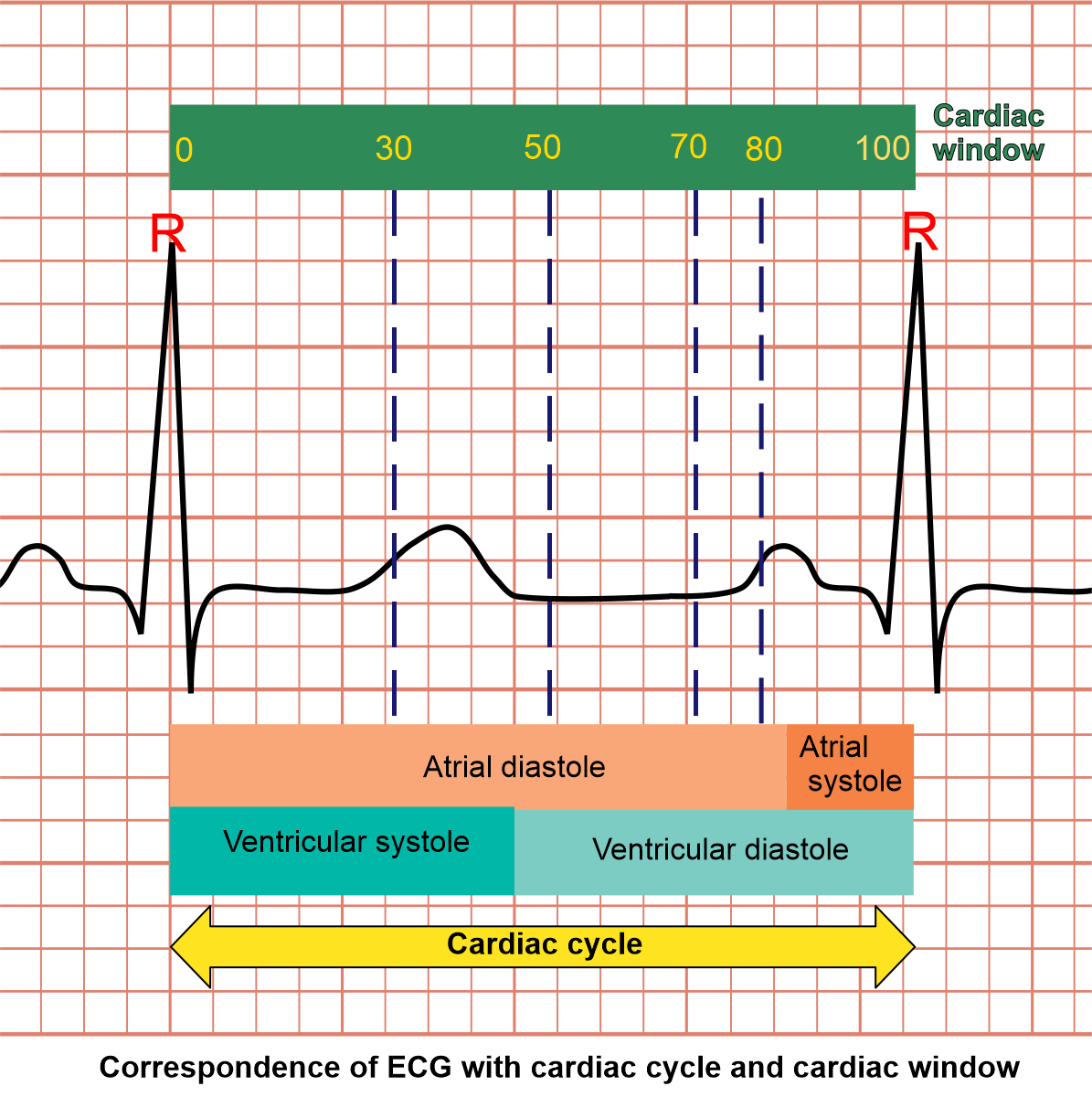 Explanations for cardiac window and gating: as we know, a cardiac cycle can be explained as the set of activities that happens between two adjacent R points (ECG). Simply, there are two major incidents in cardiac cycle which are systole and diastole. In systole, heart muscle contracts and has higher motion than diastole where it relaxes. In order to reduce motion artifacts, we usually obtain images when the heart is in it's least motion (diastolic phase).