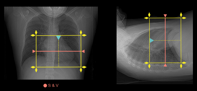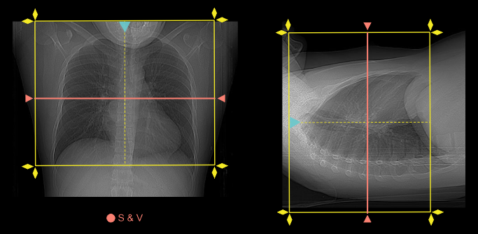 - Place S & V slice in the mid part of the heart for volume scan and below carina for bypass-helical scan.