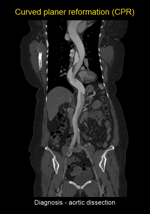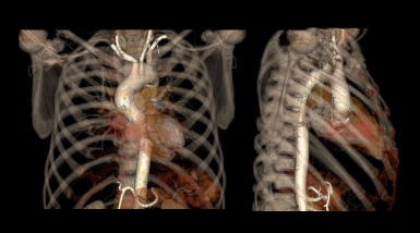 This study is performed to assess pathologies related with the thoracic aorta such as aortic aneurysms, stenosis, rupture, dissection and intra mural hematoma. Scan captures thoracic aorta from aortic arch up to diaphragm, but may be extended to common-iliac bifurcation, depending on patient’s condition. There are multiple phases in thoracic aortogram that perform before and after contrast injection. This scan differs from the abdominal angiogram because ECG triggering is used to avoid motion artifacts due to beating heart. Additionally, this scan can be used to assess coronary arteries, but only if the ECG gating is used.