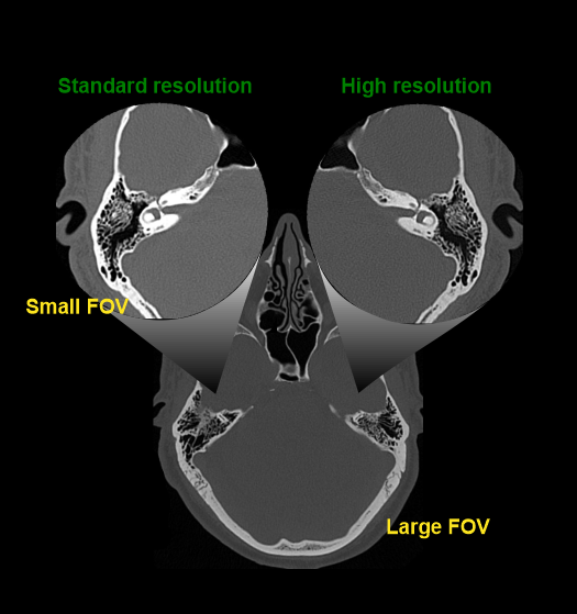 - Plan the scan range to include the temporal bone that covers superiorly from the bony part of the IAM-covering the most superior mastoid air cell to mastoid tip inferiorly.