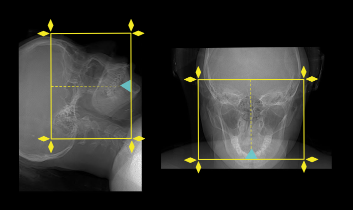 - Tilt the head such that the line joining supra-orbital point and external auditory meatus (EAM) perpendicular to the floor, and ask to close the eyes (please find more information from our Brain non-contrast article).